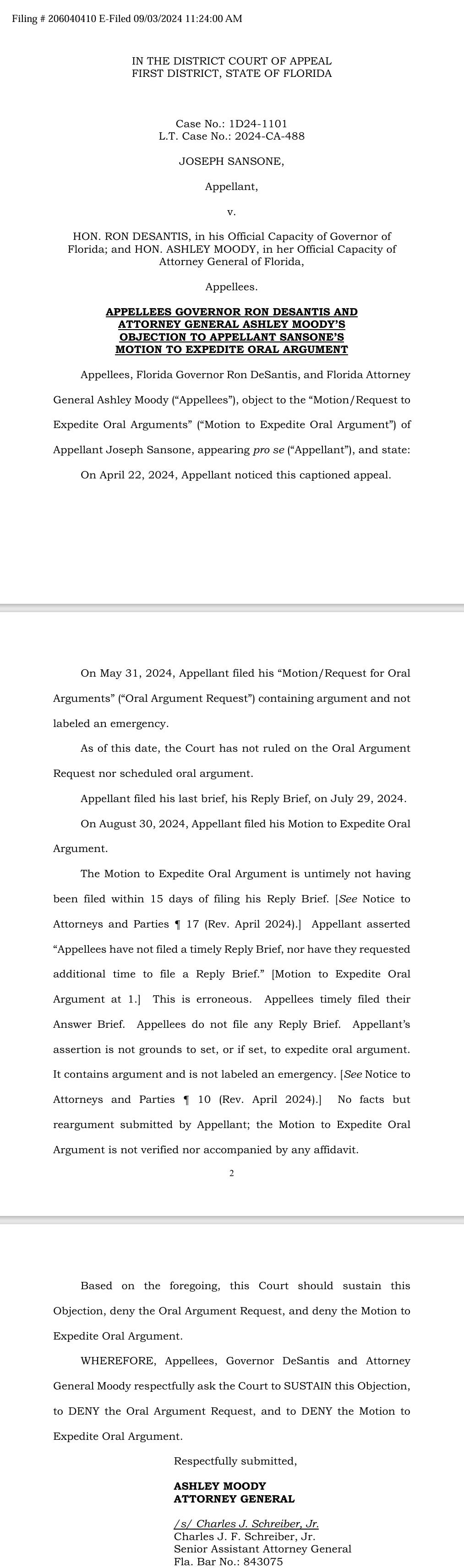 I filed a motion to Expedite Oral Arguments here. Appellees objection is below