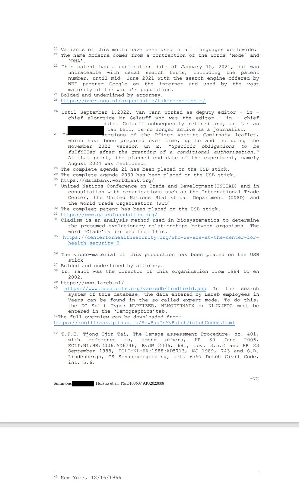 This is the case in the Netherlands against Bill Gates and Albert Bourla etc. Due to the length of the post I had to cut it into two posts. This post is the case. The next post will have the recent decision from the Court dismissing Gates claim the Court in the Netherlands did not have jurisdiction.